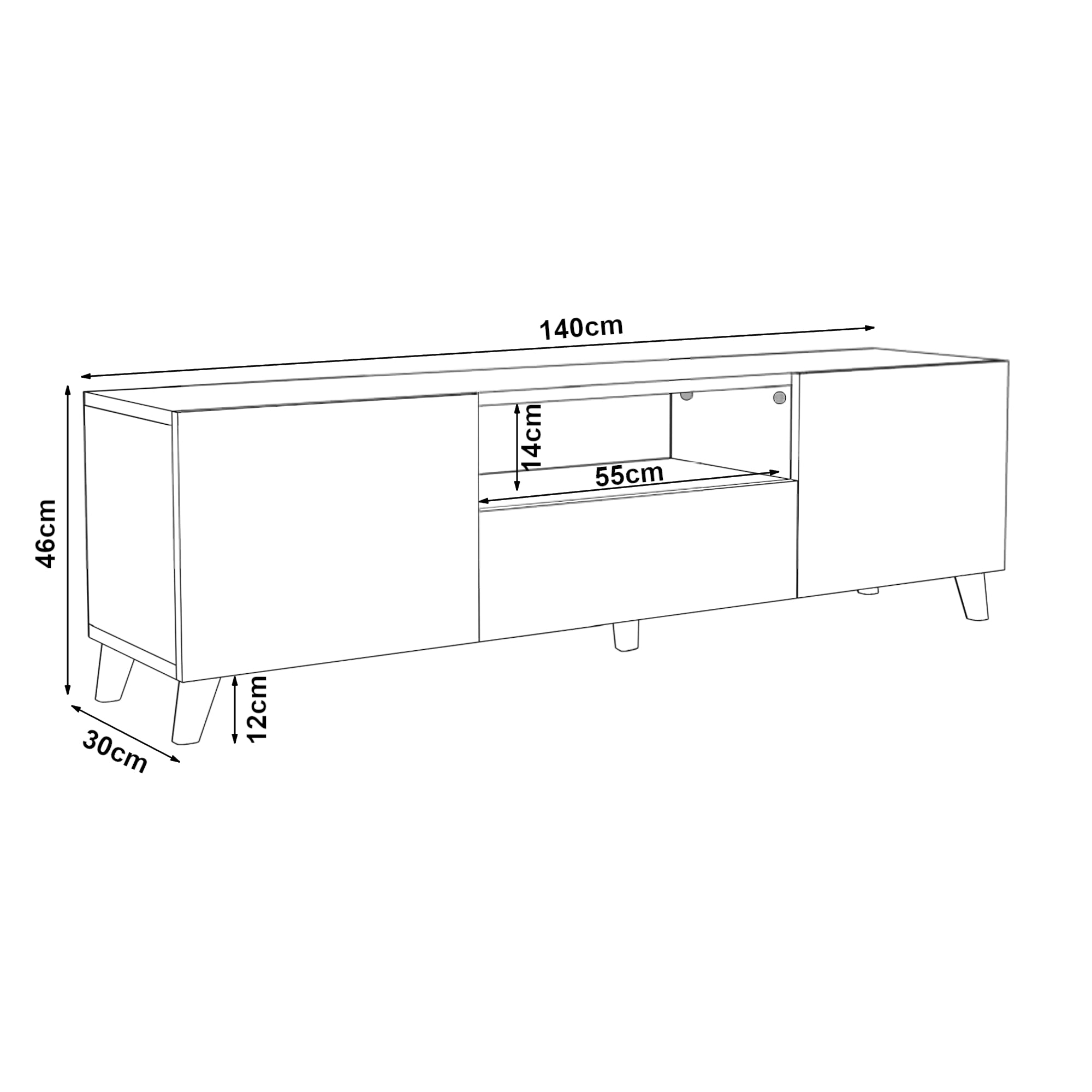 - Totaal (HxBxD): 46x140x30 cm