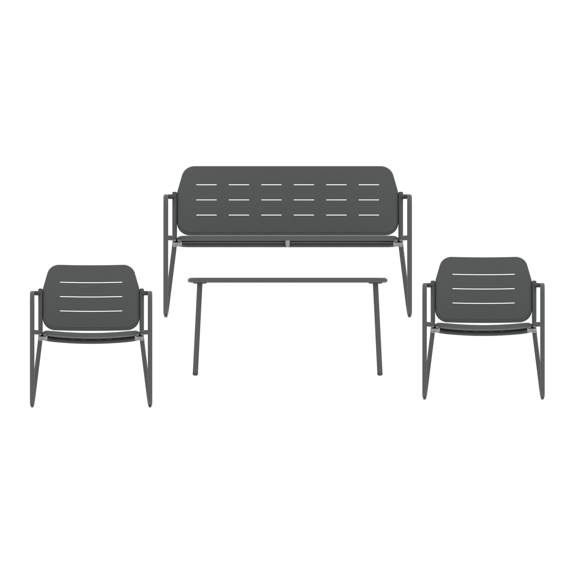 De tuinset Andria is een veelzijdig loungeset perfect voor ontspannen momenten buiten. Of je nu wilt ontbijten in de ochtendzon, borrelen met vrienden of gewoon relaxen, deze set past naadloos in elke buitenruimte, van balkon tot terras en tuin. De tafel is ideaal voor drankjes, snacks of decoratie. De bank en stoelen bieden een hoog zitcomfort dankzij de arm- en rugleuningen – perfect voor lange, gezellige zomeravonden. Het gepoedercoate stalen frame maakt het geheel weerbestendig en duurzaam. De zitgroep is onderhoudsvriendelijk: een vochtige doek is voldoende om vuil snel te verwijderen. Dankzij de robuuste constructie blijft de set stabiel staan, zelfs op ongelijke oppervlakken.