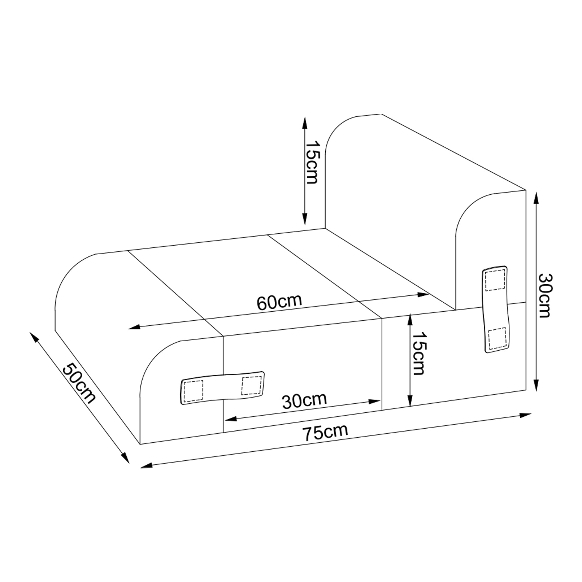 - élément angulaire (hxlxp) : 15 x 50 x 30 cm chacun