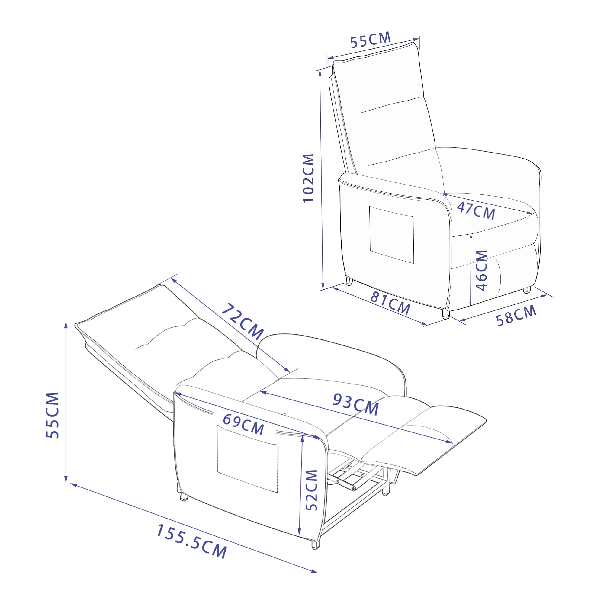 - surface de l'assise (largeur x profondeur) : 55 x 47 cm