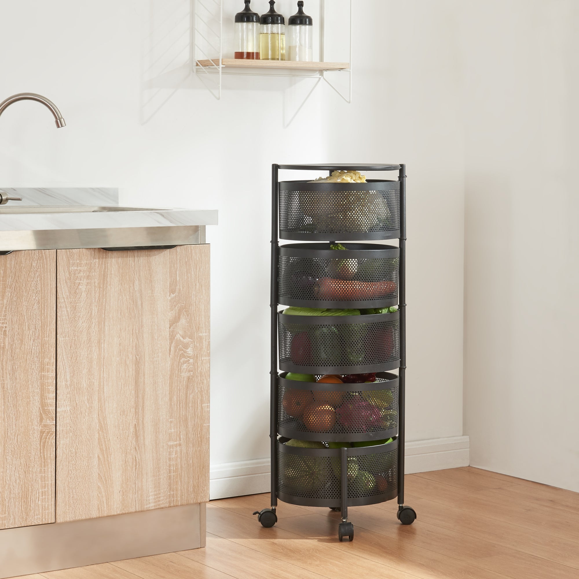 Notre desserte à roulettes est l'accessoire idéal pour votre maison ou votre espace de travail. Facile à déplacer grâce à ses 4 roulettes, elle offre une multitude de possibilités d'utilisation. Ses étagères rondes permettent un accès facile aux boissons, collations et autres objets. Les corbeilles supérieures dépliables permettent d'atteindre et de ranger rapidement les objets sans effort. Avec son style intemporel, notre chariot de service s'harmonise aisément avec tous les styles de décoration.