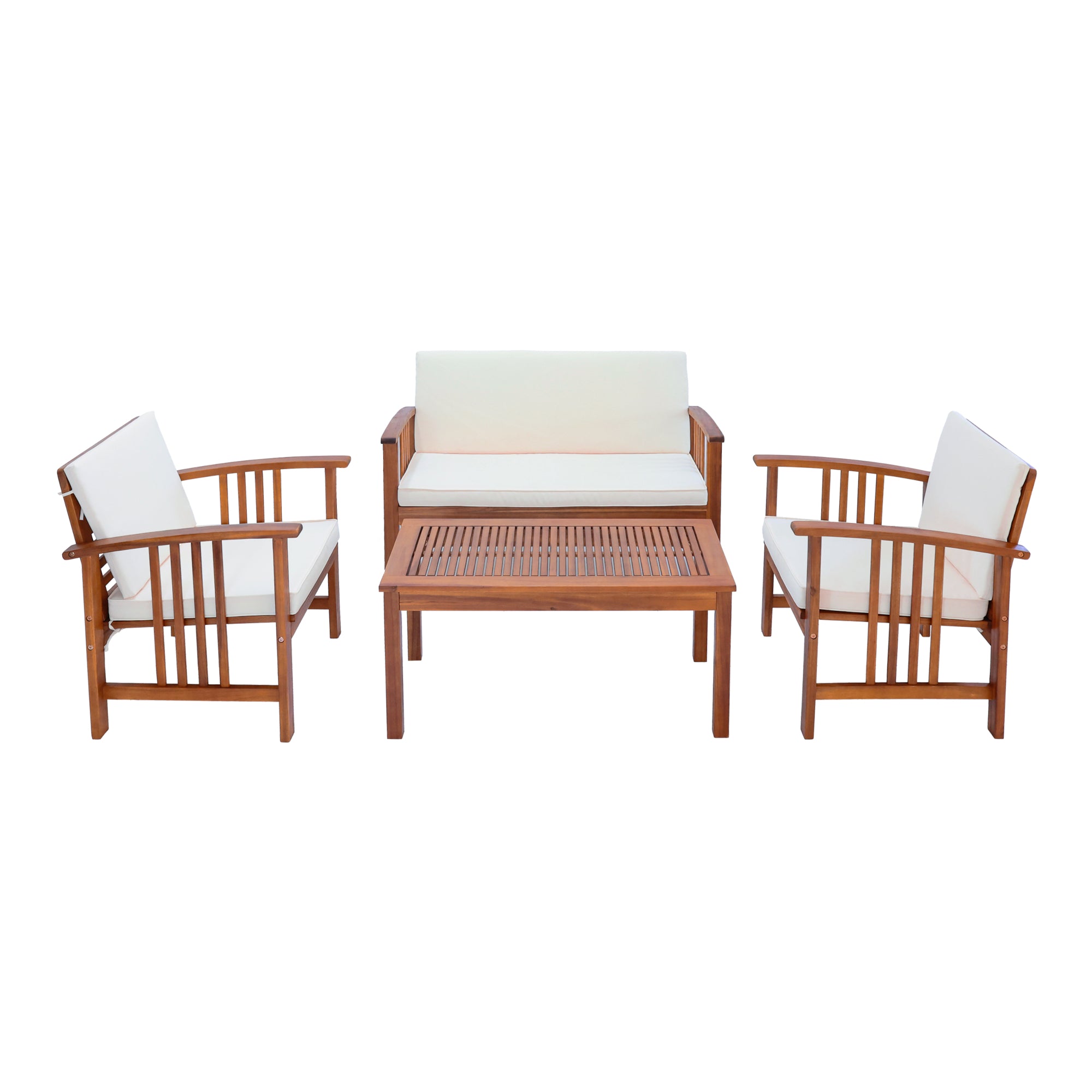 Cet ensemble de mobilier de jardin 4 pièces ajoute une élégance charmante à tout espace extérieur. Avec une table stylée, un banc pour 2 personnes et 2 chaises confortables, il crée une atmosphère chaleureuse, que ce soit sur la terrasse, dans le jardin, sur le balcon ou même sur la pelouse. Les chaises et le banc 2 places se distinguent par leurs accoudoirs confortables. De plus, ils sont livrés avec des coussins d'assise qui assurent un excellent confort.