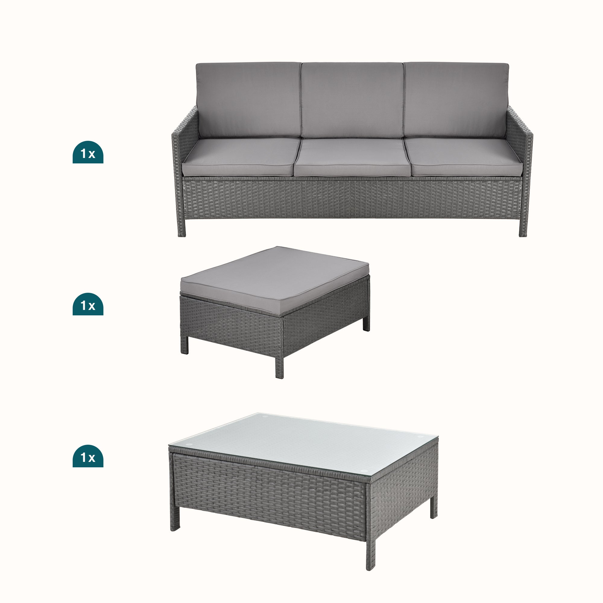 - ensemble de 3 meubles se composant de canapé, pouf et table