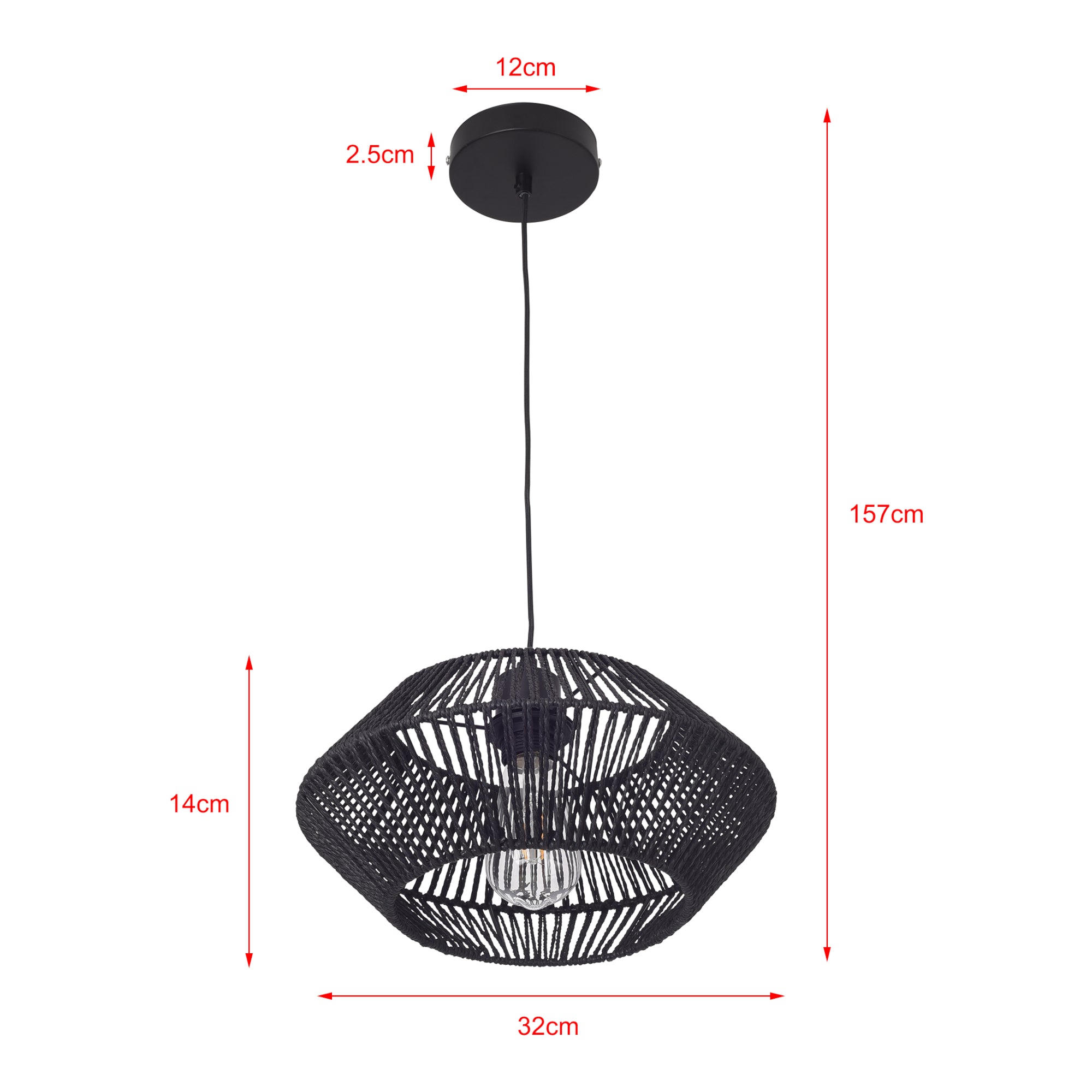- douille de lampe : 1 x E27, max. 60W (livré sans ampoule)