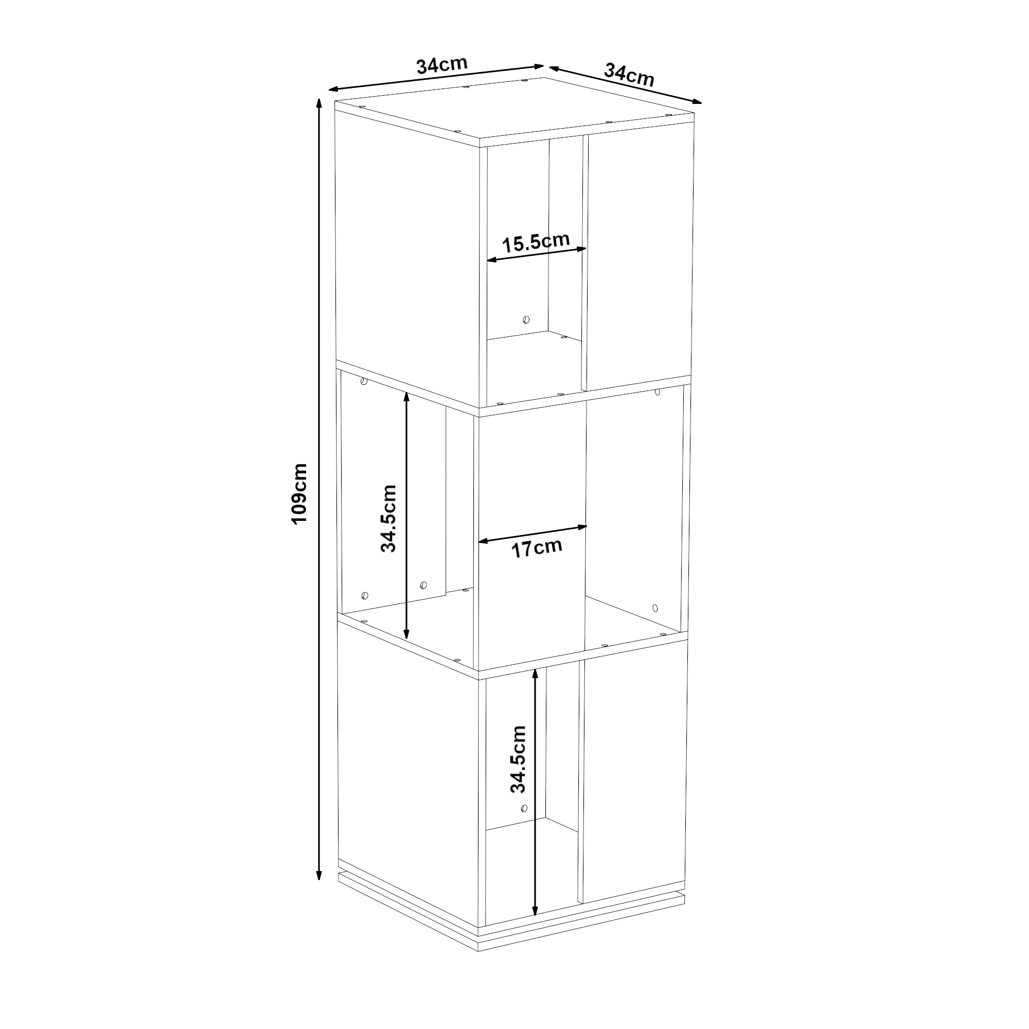 Met zijn afmetingen van 109x34x34 cm en zijn moderne witte kleur past het draaibare boekenrek niet alleen perfect in de kinderkamer, maar ook in de woonkamer of kantoorruimte. Het helpt om orde te creëren en een overzichtelijke, gezellige sfeer te behouden.