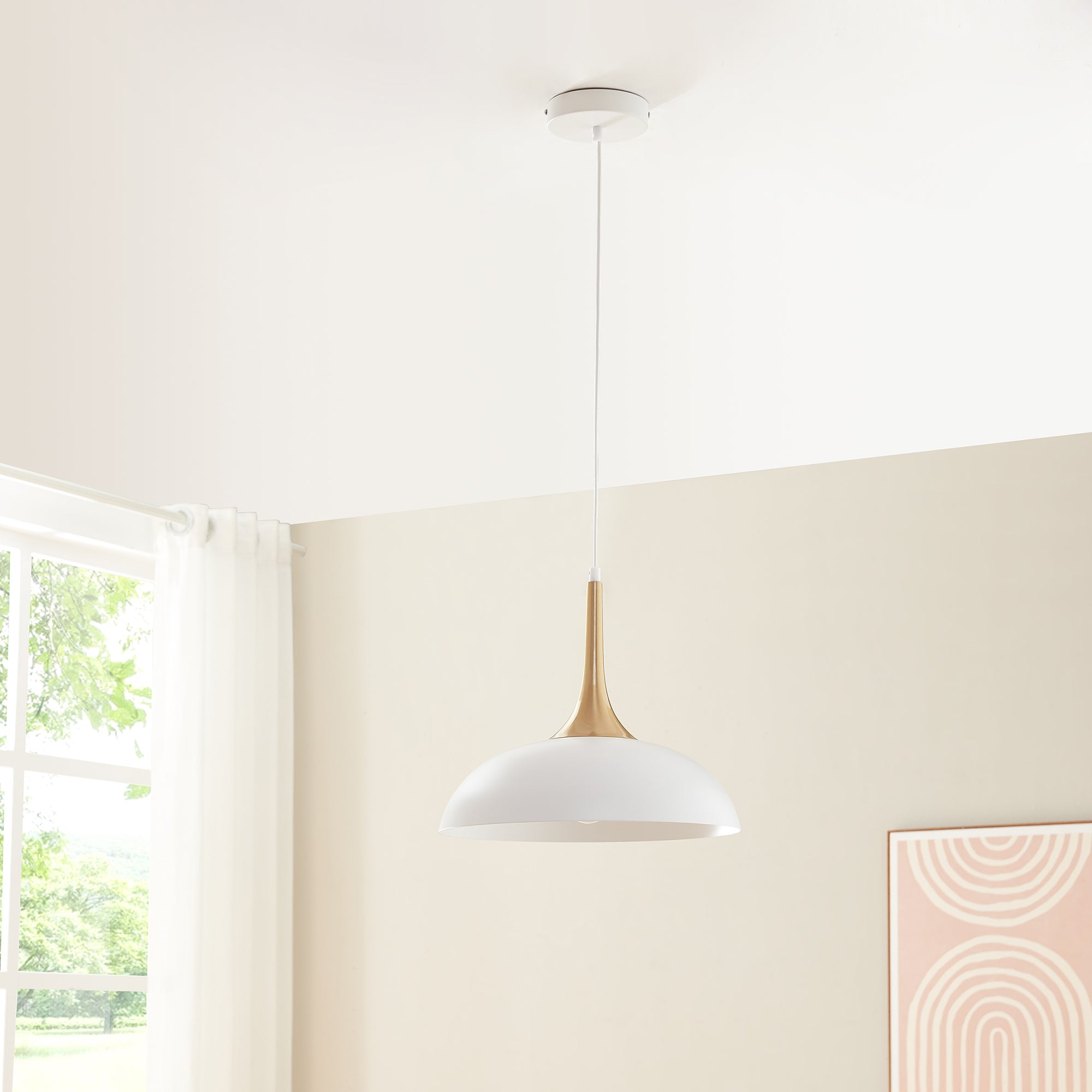 De hanglamp Blairgowrie van [lux.pro] combineert een stijlvol ontwerp met praktische functionaliteit. De elegante metalen lampenkap in wit met messingkleurige accenten geeft de lamp een hoogwaardige uitstraling en maakt haar tot een blikvanger in elke ruimte.
