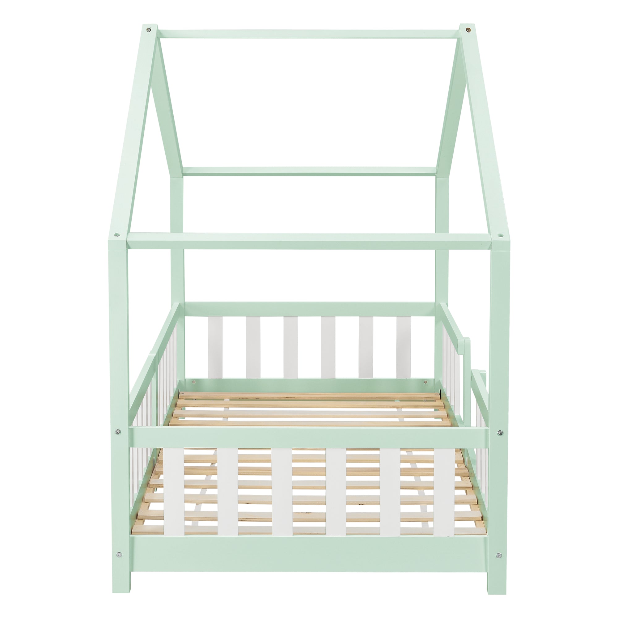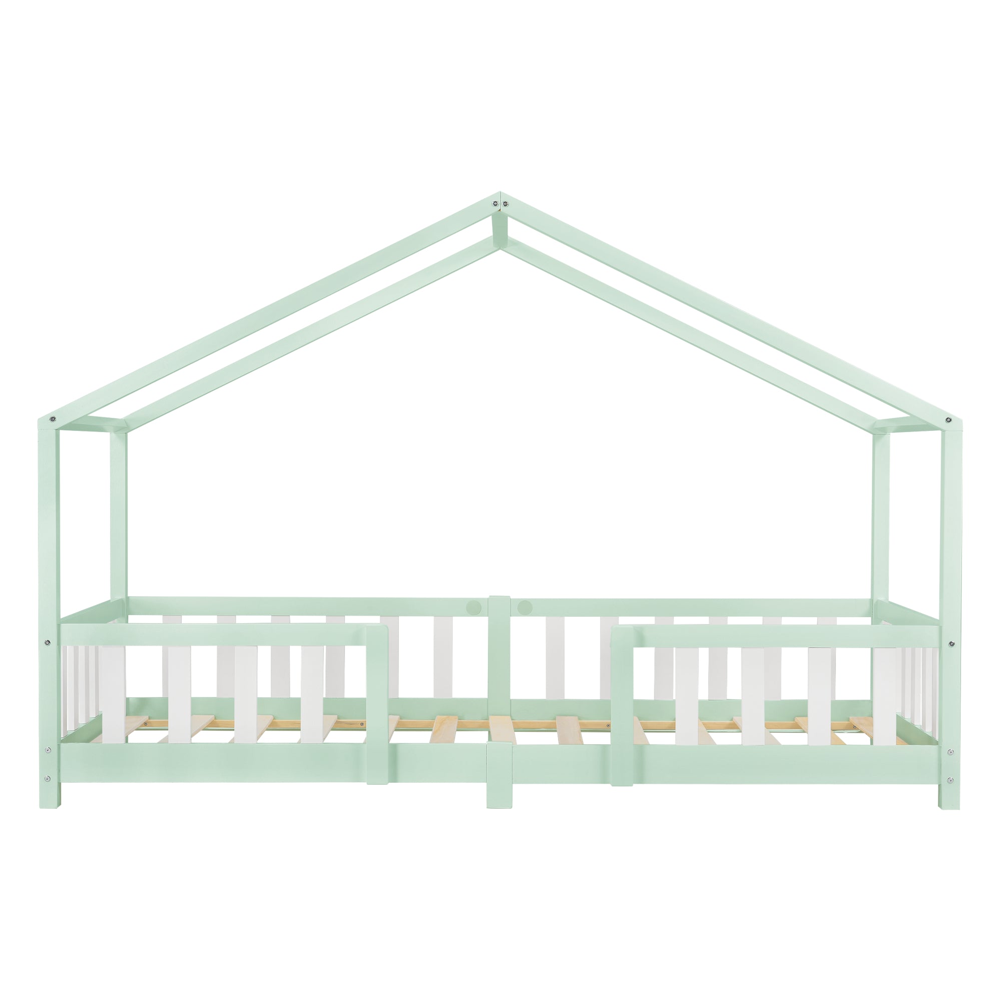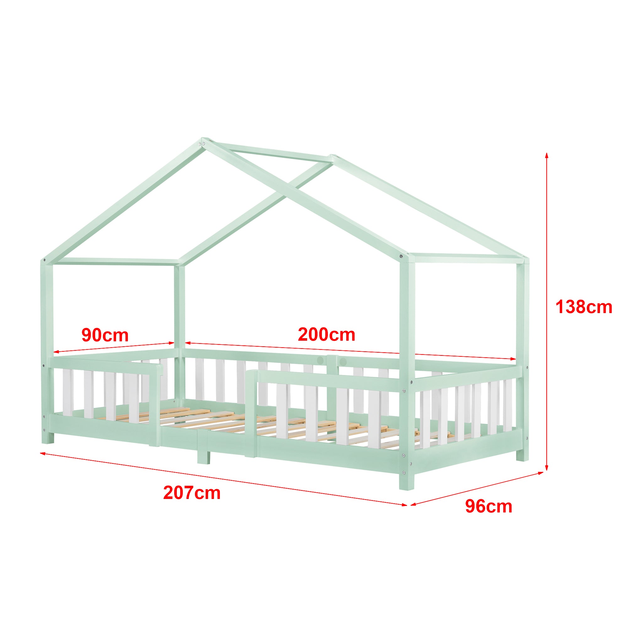 Dit stevige grenen huisbed met uitvalbeveiliging en bedbodem is een favoriet van kinderen.