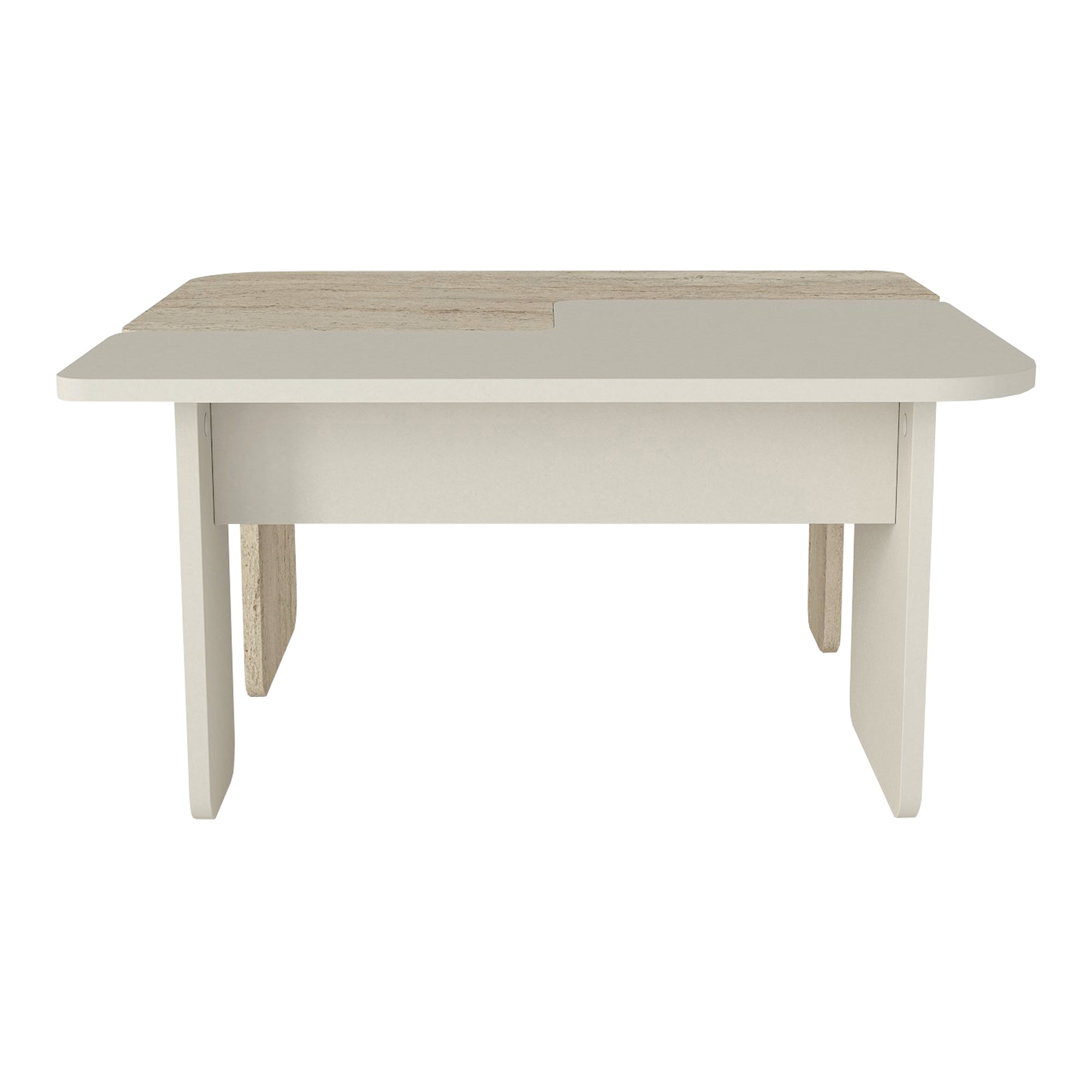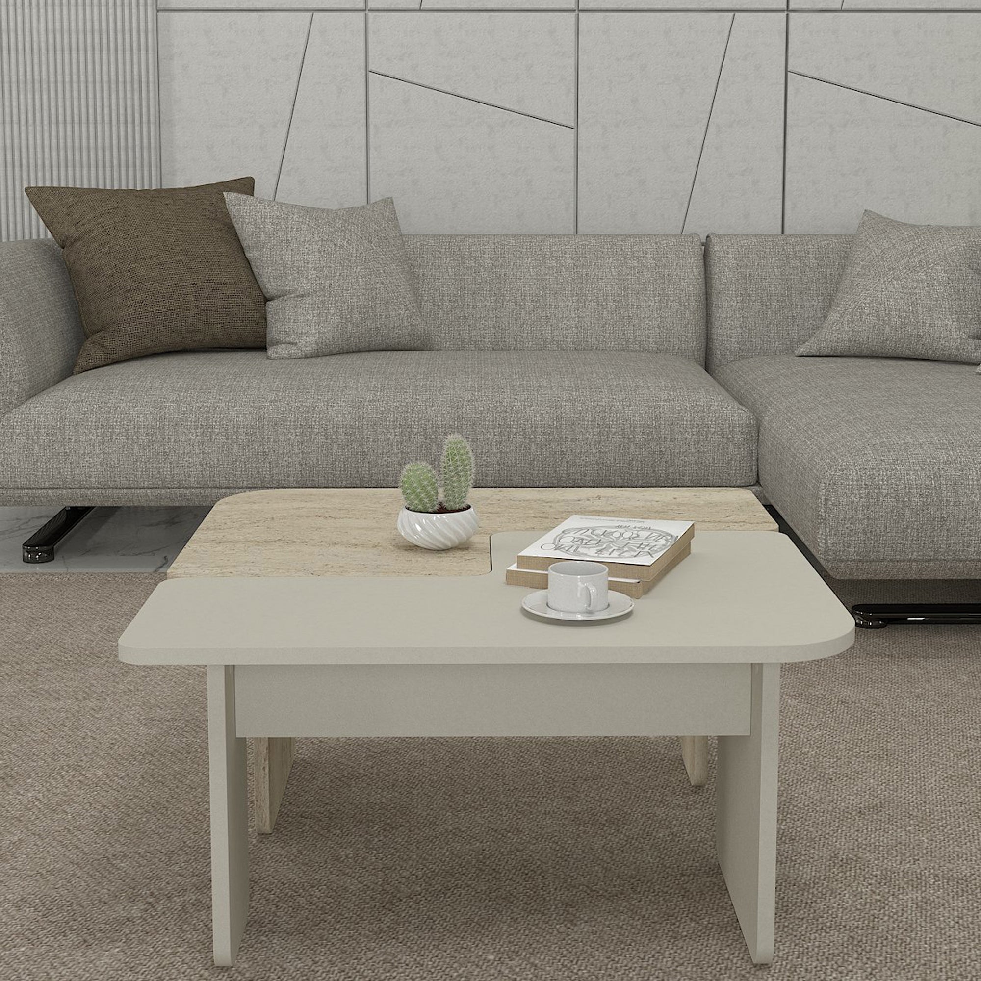 Deze tweedelige salontafel voegt een stijlvolle en moderne sfeer toe aan je woonkamer. De twee tafelhelften hebben elk een eigen kleur en vormen samen een harmonieus geheel dat perfect past binnen verschillende interieurstijlen.