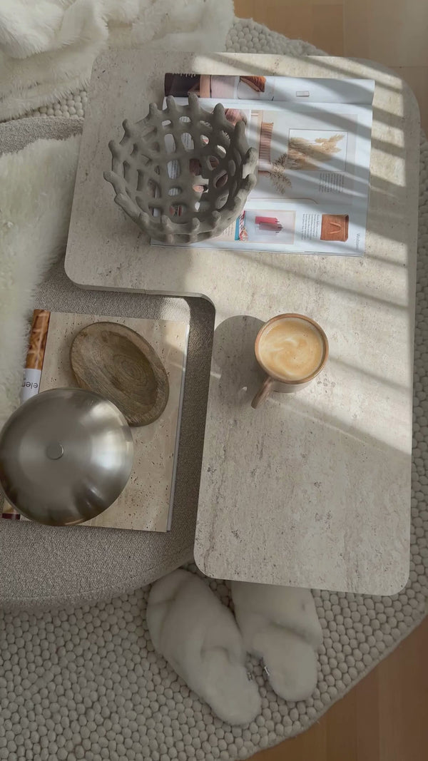 De ruime tafelbladen bieden voldoende plaats voor alledaagse spullen. Boeken, tijdschriften, snacks, drankjes of afstandsbedieningen – alles heeft zijn plek en is altijd binnen handbereik. Ideaal voor gezellige avonden of om je woonaccessoires mooi te presenteren.
